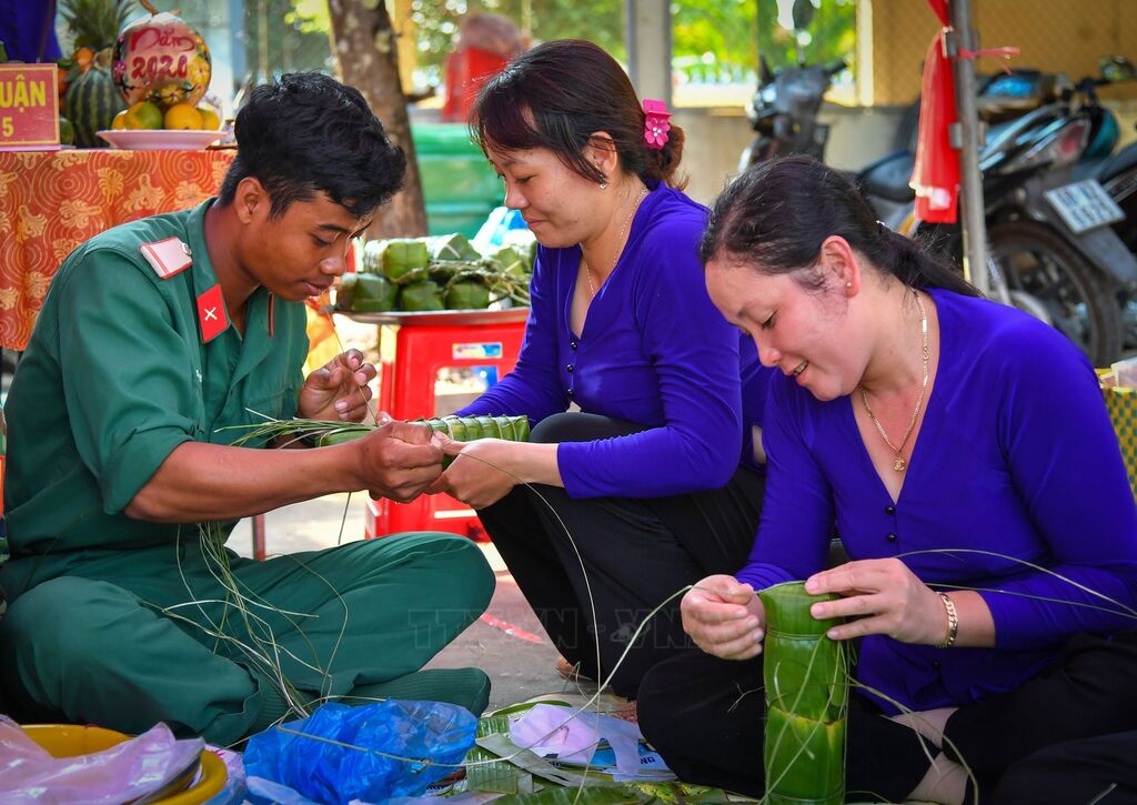 | Thắm tình quân - dân qua hội thi gói, nấu bánh tét |