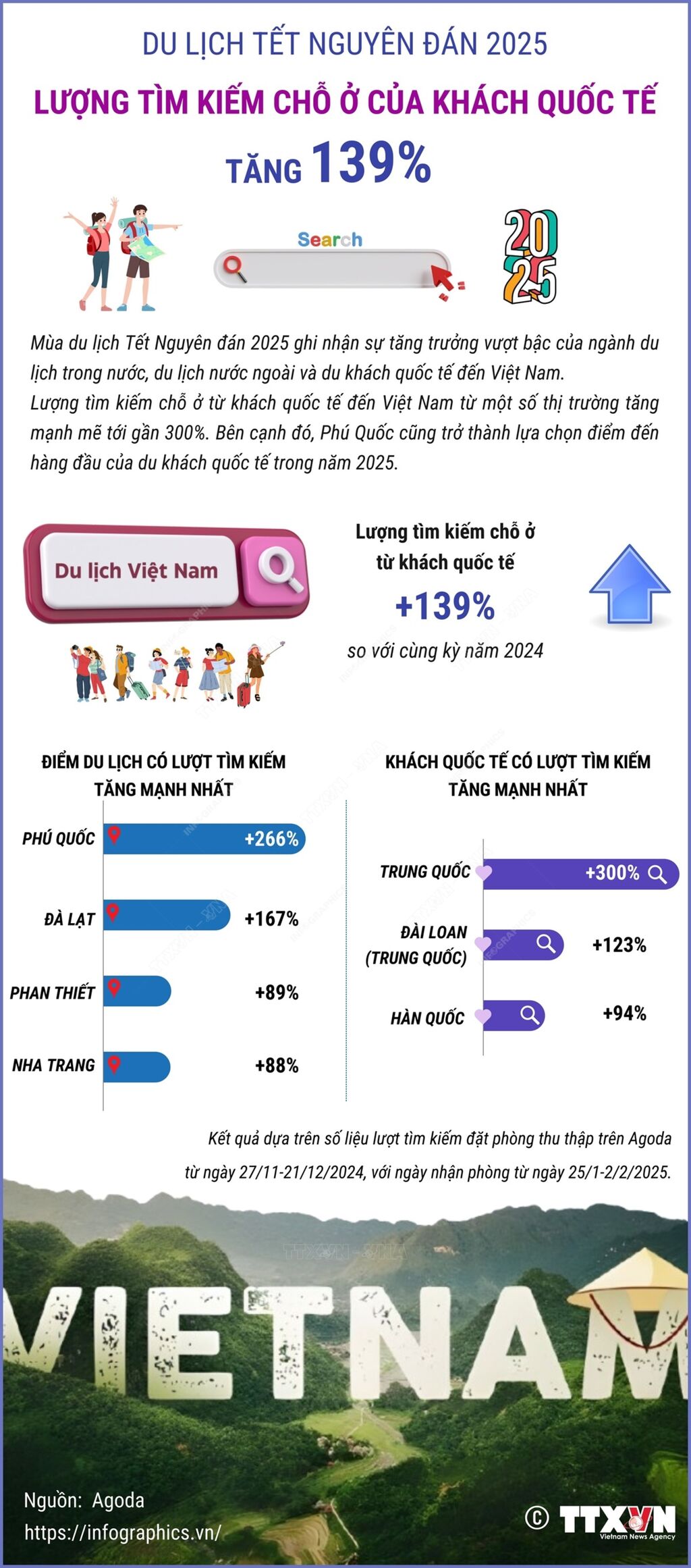 Du lịch Tết Nguyên đán 2025: Lượng tìm kiếm chỗ ở của khách quốc tế tăng 139%