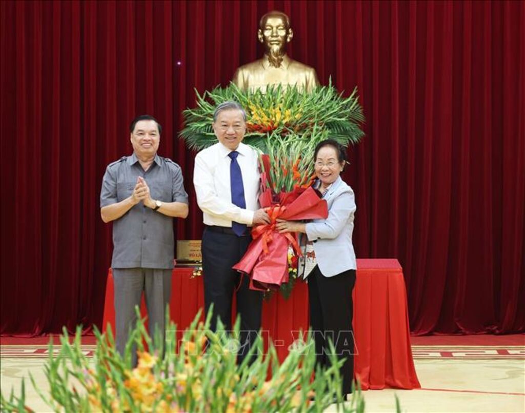 | Giáo sư, Tiến sĩ Nguyễn Thị Doan, Chủ tịch Hội Khuyến học Việt Nam (bìa phải). |