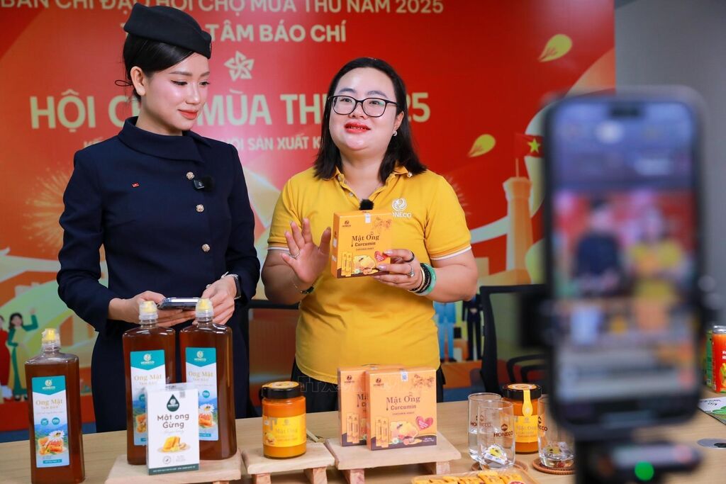 Hội chợ mùa Thu 2025 đang diễn ra từ ngày 25/10 đến 4/11/2025 tại Trung tâm triển lãm Quốc gia (Đông Anh, Hà Nội) với hơn 3000 gian hàng, không chỉ là nơi trưng bày và giao thương hàng hóa, mà còn là điểm nhấn trong hoạt động xúc tiến thương mại hiện đại. Với cách tiếp cận mới, mỗi gian hàng đều có sự kết hợp không gian truyền thống và nền tảng số, đặc biệt với sự tham gia của nhiều người có ảnh hưởng chính (KOL), người tiêu dùng chủ chốt (KOC), Tiktoker nổi tiếng, góp phần lan tỏa mạnh mẽ hình ảnh, thương hiệu Việt trong kỷ nguyên thương mại điện tử. Ảnh: TTXVN