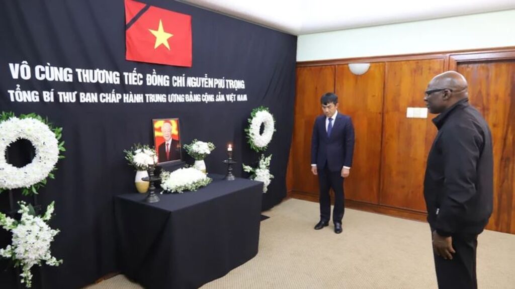 Hanoi (VNA) – General Secretary of the South African Communist Party (SACP) Solly Mapaila on July 24 afternoon came to the Vietnamese Embassy in South Africa to pay his respects and sign the condolence book following the passing of General Secretary of the Communist Party of Vietnam (CPV) Central Committee Nguyen Phu Trong.