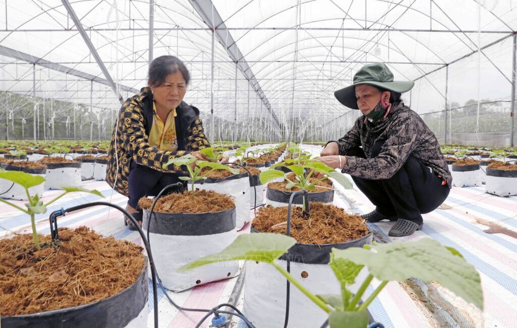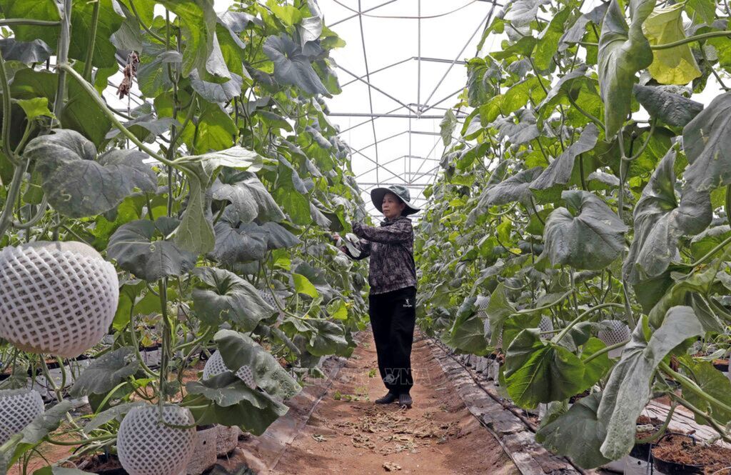 Automatic irrigation system controlled via smartphone. VNA Photo: Trần ViệtFarmers in Hai Duong province are delighted with fruits grown in greenhouses. VNA Photo: Trần ViệtFarmers in Tien Duc commune, Hung Ha district, Thai Binh province grow trees on coconut fiber products. VNA Photo: Trần ViệtMany farming households in Tien Duc commune, Hung Ha district, Thai Binh province invest in greenhouses and automatic irrigation technology for high efficiency. VNA Photo: Trần ViệtA large greenhouse of Vu Hong Nhat's family in Gia Hoa commune, Gia Vien district, Ninh Binh province can grow plants all year round. VNA Photo: Trần ViệtNguyen Van Tien's family in Gia Phuong commune, Gia Vien district, Ninh Binh province converted 2 ha of ineffective rice fields into a circular economic model, growing vegetables for high economic efficiency. VNA Photo: Trần ViệtPlants grown in bags of organic soil by a family in Thai Hoa commune, Binh Giang district, Hai Duong province. VNA Photo: Trần Việt