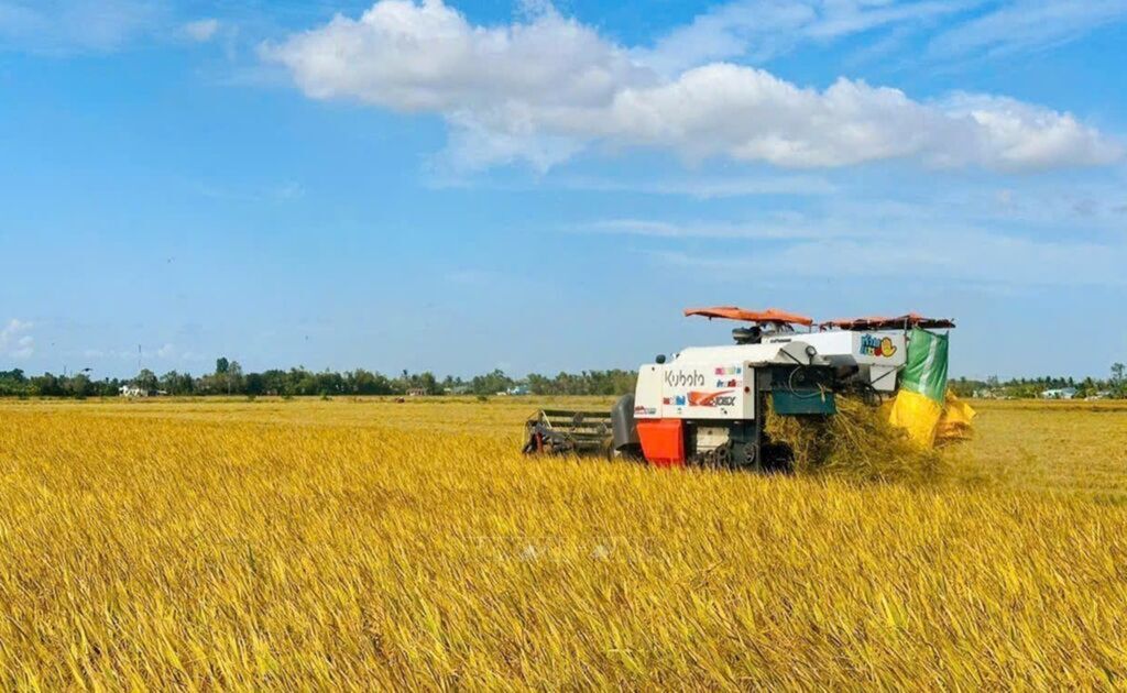 Farmers harvest rice using combined harvesters in the fields of Phuoc Long District, Bac Lieu Province. Photo by courtesy/VNA