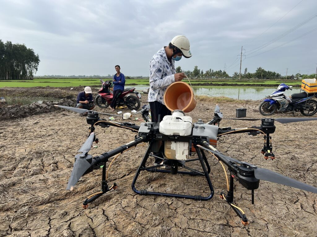 Bac Lieu farmers use drones to spray pesticides on rice fields. Photo by courtesy/VNA