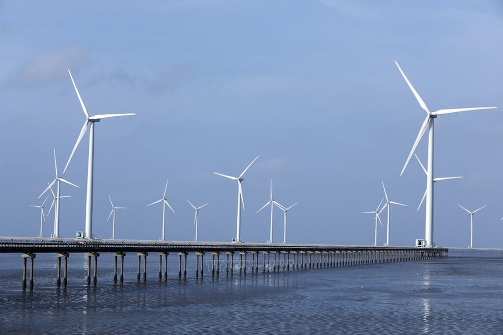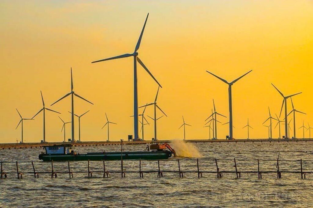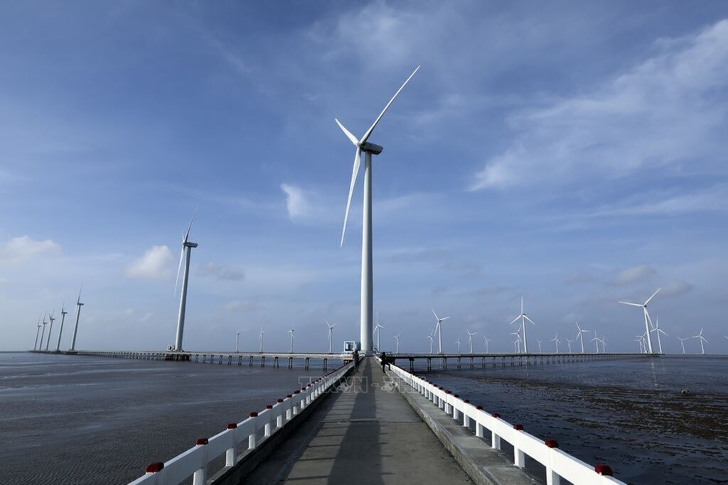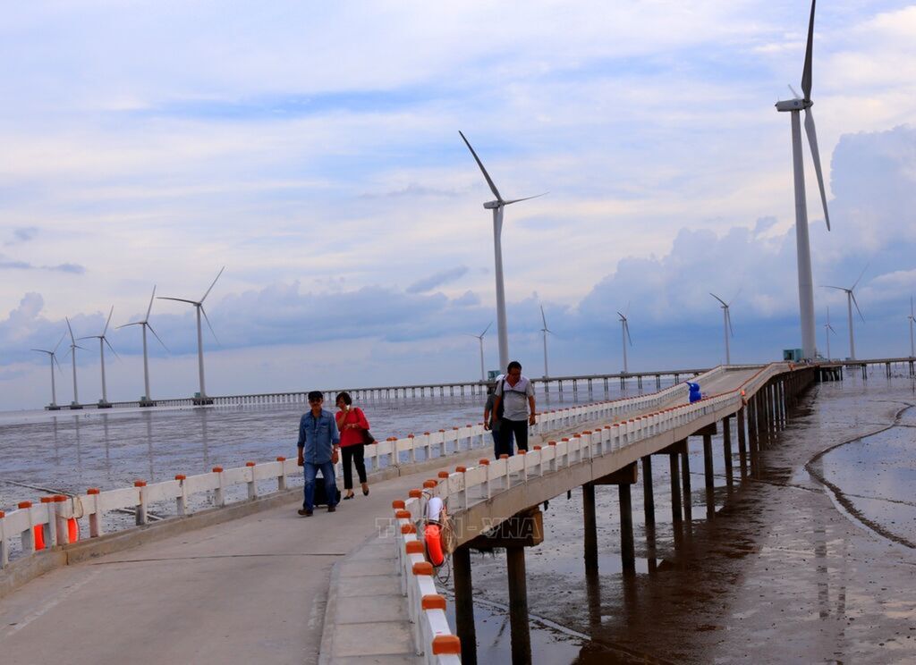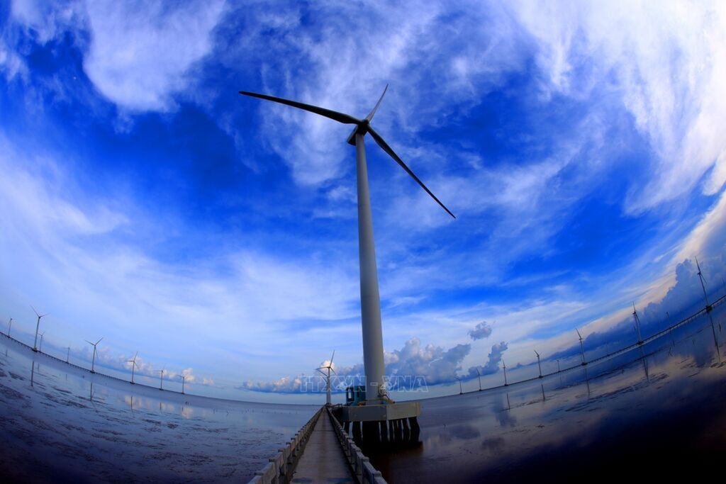 Photo: The Bac Lieu wind power plant in Vinh Trach Dong commune, Bac Lieu city, has so far provided over 1.1 billion kWh to the national grid. Photo: VNA