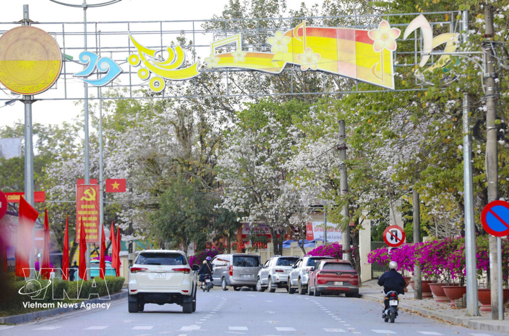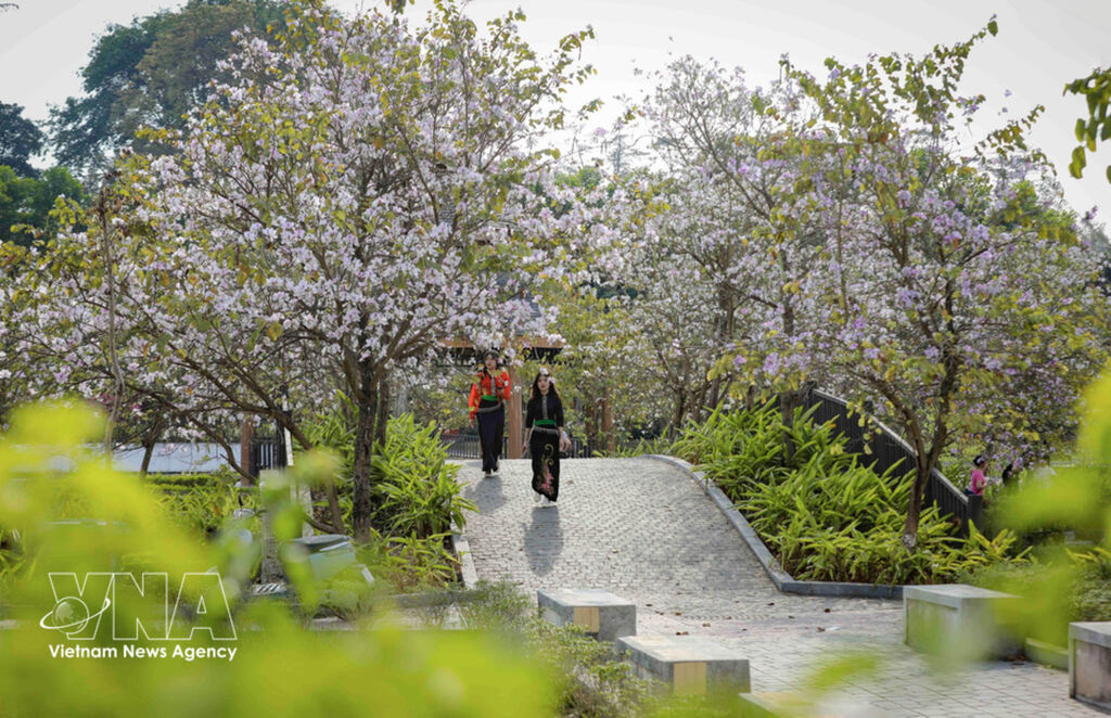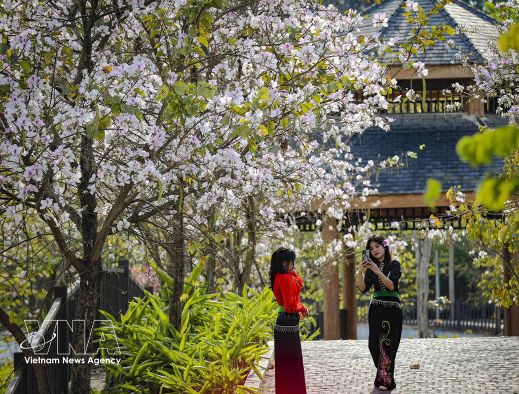 From mid-February, ban (bauhinia) flowers – a signature blossom of Vietnam’s northwestern mountains – come into full bloom along streets, in parks, and throughout residential areas in Dien Bien Phu ward, Dien Bien province. Their pristine white petals not only signal the arrival of spring in the mountain town but also create a romantic setting that attracts both residents and visitors.
