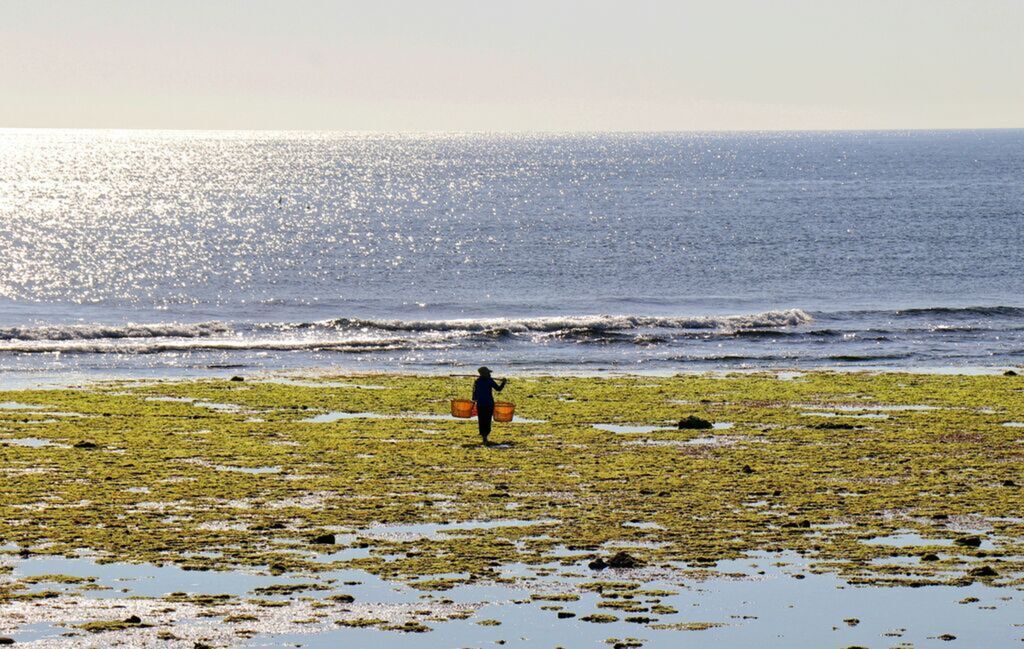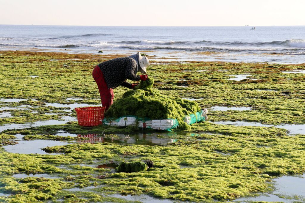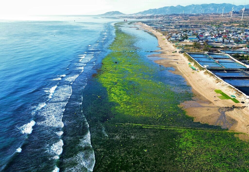 seaweed field stretching more than 2km along a beach in Tu Thien village, Ninh