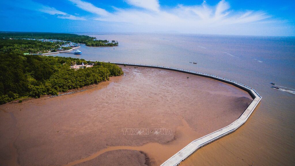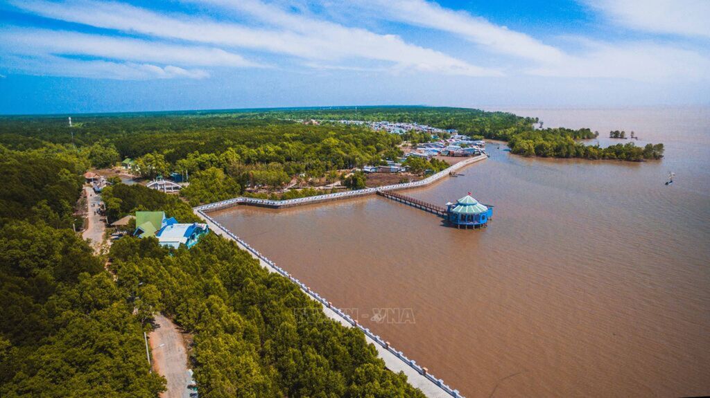 National coordinate marker at Ca Mau Cape GPS number 0001, located at 8°37'30'' North latitude, 104°43' East longitude in Ap Mui, Dat Mui commune, Ngoc Hien district. Photo: Thanh Ha - VNAThe symbol of Ca Mau Cape is the image of a ship facing the East Sea. Photo: Thanh Ha - VNAAn aerial view of Ca Mau Cape National Park. Photo: Trong Dat - VNAAn aerial view of Ca Mau Cape National Park. Photo: Trong Dat - VNAA solid concrete dyke system helps prevent land erosion surrounds Ca Mau Cape National Park. This is the last point of Vietnam's territory, where visitors can watch the sun rise in the East Sea and set in the western sea. Photo: Trong Dat - VNAAn aerial view of Ca Mau Cape National Park. Photo: Trong Dat - VNAA corner of Dat Mui commune, Ngoc Hien district, Ca Mau Cape National Park. Photo: Trong Dat - VNANational coordinate marker at Ca Mau Cape GPS number 0001, located at 8°37'30'' North latitude, 104°43' East longitude in Ap Mui, Dat Mui commune, Ngoc Hien district. Photo: Trong Dat – VNANational coordinate marker at Ca Mau Cape GPS number 0001, located at 8°37'30'' North latitude, 104°43' East longitude in Ap Mui, Dat Mui commune, Ngoc Hien district. Photo: Trong Dat – VNAAn aerial view of Ca Mau Cape National Park. Photo: Trong Dat - VNA