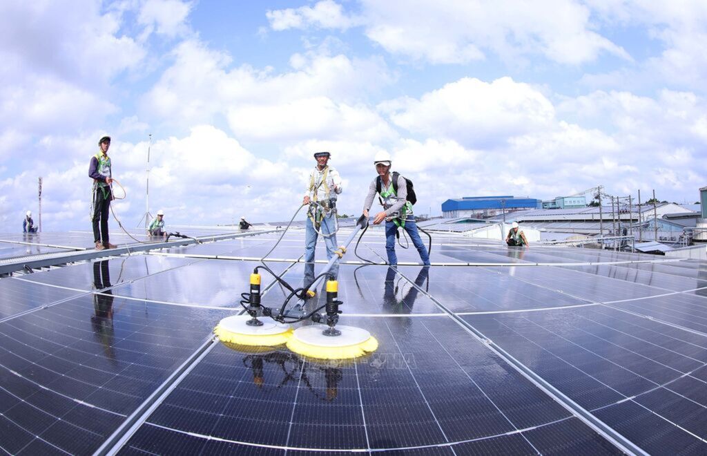 Operators on duty to connect power to the national grid at Hoa Binh 5 Wind Power Plant (Hacom Holdings Investment JSC), Vinh Hau commune, Ca Mau province. Photo: Vu Sinh – VNAMaintenance of rooftop solar panels at a seafood processing plant of Minh Phu Seafood Group in Ly Van Lam ward, Ca Mau province. Photo: Vu Sinh – VNAHoa Binh 5 Wind Power Plant – Phase 1, located in Vinh Hau commune, Ca Mau province, is the largest onshore coastal wind power plant in the Mekong Delta, put into operation in April 2022. Photo: Vu Sinh – VNAMinh Phu Seafood Group in Ly Van Lam ward, Ca Mau province installs a rooftop solar power system with an average output of 200,000 kWh, helping reduce production costs by about 38% per month, equivalent to savings of around 95,000 kWh monthly. Photo: Vu Sinh – VNACurrently, Ca Mau province has more than 2,800 rooftop solar systems with a total capacity exceeding 295 MWp. In the 2026–2030 period, the province will accelerate renewable energy development, adding 100 MW of solar power and 117 MW of rooftop solar capacity in line with the National Power Development Plan VIII. Photo: Vu Sinh – VNASafety inspection at the 110kV substation of Hoa Binh 5 Wind Power Plant (Hacom Holdings Investment JSC), Vinh Hau commune, Ca Mau province. Photo: Vu Sinh – VNA