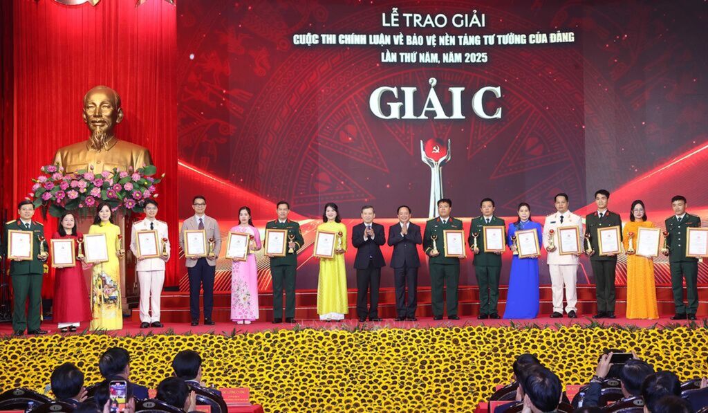 Nguyen Trong Nghia, Politburo member, Secretary of the Party Central Committee, Head of the Central Commission for Information and Mass Mobilization, Deputy Head of the Central Steering Committee 35, and Deputy Head of the Contest Steering Committee, delivers a speech to launch the 2026 contest. Photo: Van Diep – VNAGeneral Trinh Van Quyet, Secretary of the Party Central Committee and Director of the General Department of Politics of the Viet Nam People’s Army, and Comrade Le Minh Tri, Secretary of the Party Central Committee and Chief Justice of the Supreme People’s Court, present the C prizes to the winning authors and groups. Photo: Van Diep – VNALeaders and journalists from the Viet Nam News Agency attend the award ceremony. Photo: VNANguyen Xuan Thang, Politburo member, President of the Ho Chi Minh National Academy of Politics, Chairman of the Central Theoretical Council, Deputy Head of the Central Steering Committee 35, and Head of the Contest Steering Committee, together with Comrade Nguyen Trong Nghia, Politburo member, Secretary of the Party Central Committee, Head of the Central Commission for Information and Mass Mobilization, Deputy Head of the Central Steering Committee 35, and Deputy Head of the Contest Steering Committee, present the B prizes to the winning authors and groups. Photo: Van Diep – VNAState President Luong Cuong and Permanent Member of the Party Central Committee’s Secretariat Tran Cam Tu present the A prizes to the winning authors and groups. Photo: Van Diep – VNAState President Luong Cuong and delegates attend the award ceremony of the 5th Theoretical Writing Contest on Defending the Party’s Ideological Foundation. Photo: Van Diep – VNA