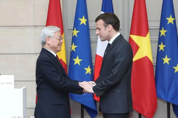 French President Emmanuel Macron said that General Secretary Trong has spared no effort for Vietnam's sovereignty and to led the country to gain remarkable achievements in socio-economic development. He recalled the memories of the meeting with the Party chief in Paris in 2018, as well as the contents exchanged with Trong in a phone call last October, including the determination to strengthen friendship and cooperation between the two countries and two peoples.