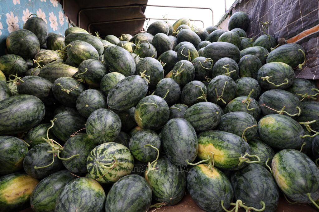 In late April, at the largest concentrated watermelon-growingarea in Đà Nẵng, located in Chien Dan and Tay Ho communes, farmers enter thepeak harvest season. In 2026, the growing area has yielded high output, withevenly sized fruits, rich flesh, and thin rinds. With farm-gate prices rangingfrom 3,000 to 4,000 VND per kilogram, large-scale growers still earnconsiderable income. Photo: Do Truong – VNA