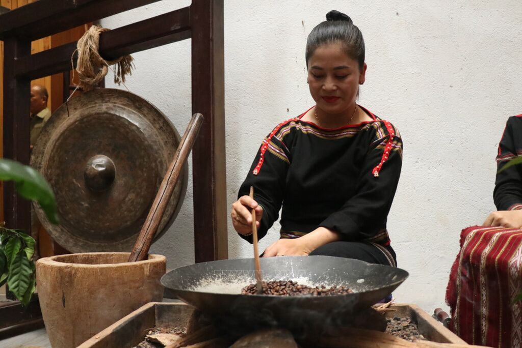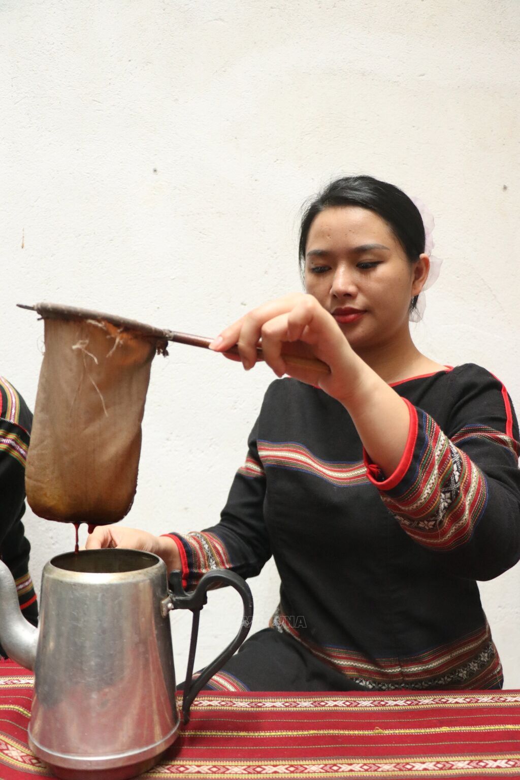 Distinctive traditional way of enjoying coffee among E De ethnic people