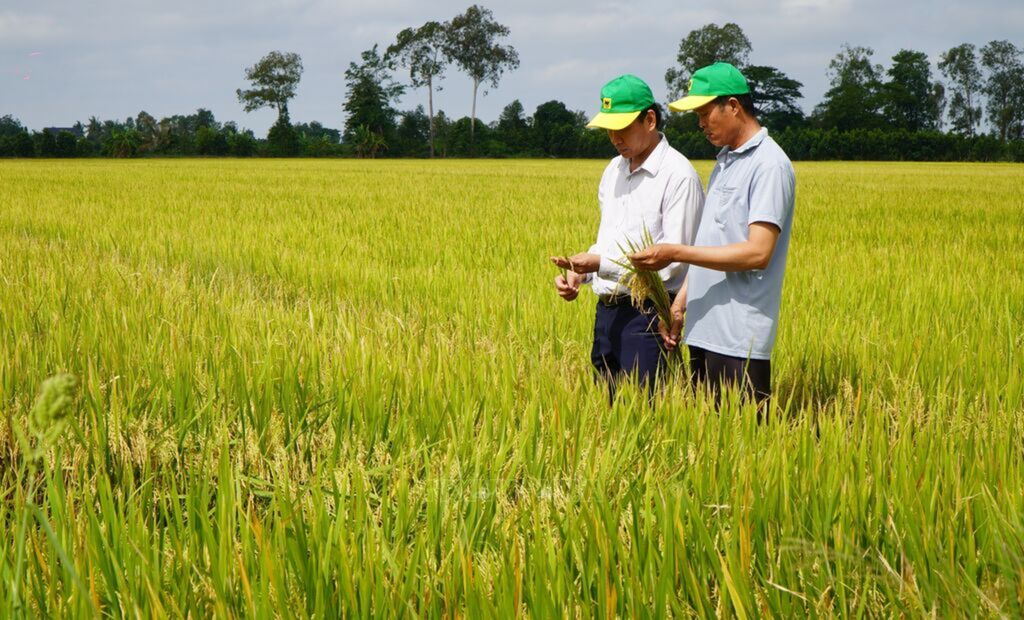 Leaders of Dong Thap’s Department of Agriculture and Environment, along with relevant units, visit rice fields participating in the one-million-hectare high-quality, low-emission rice project in My Thanh Commune. Photo: Nhut An – VNARice fields under the one-million-hectare high-quality, low-emission rice project in My Thanh Commune, Dong Thap Province. Photo: Nhut An – VNAMr. Ngo Quy Binh (right) in My Thanh Commune, Dong Thap Province, cultivates 1.5 hectares of rice under the one-million-hectare high-quality, low-emission rice project. Photo: Nhut An – VNADeputy Director of Dong Thap’s Department of Agriculture and Environment, Le Chi Thien (2nd L), visits rice fields under the one-million-hectare high-quality, low-emission rice project in My Thanh Commune. Photo: Nhut An – VNARice fields cultivated by Mr. Ngo Quy Binh in My Thanh Commune, Dong Thap Province, under the high-quality, low-emission rice project, approaching harvest time. Photo: Nhut An – VNA