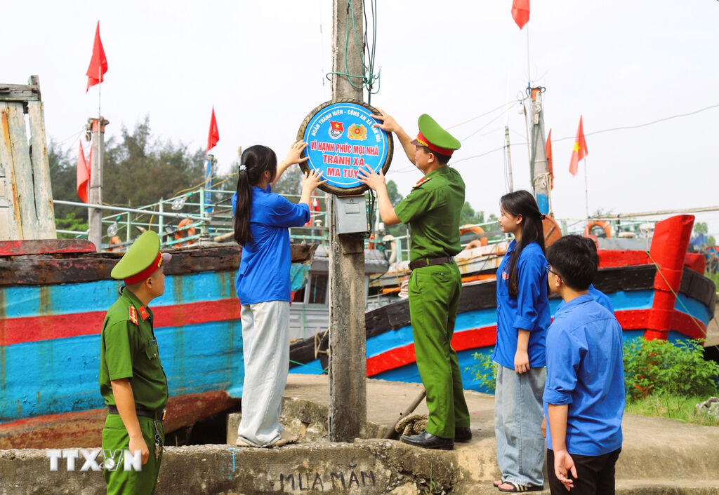 | Local police force and youth union members join hands to promote a model ensuring local security and order. (Photo: VNA) |