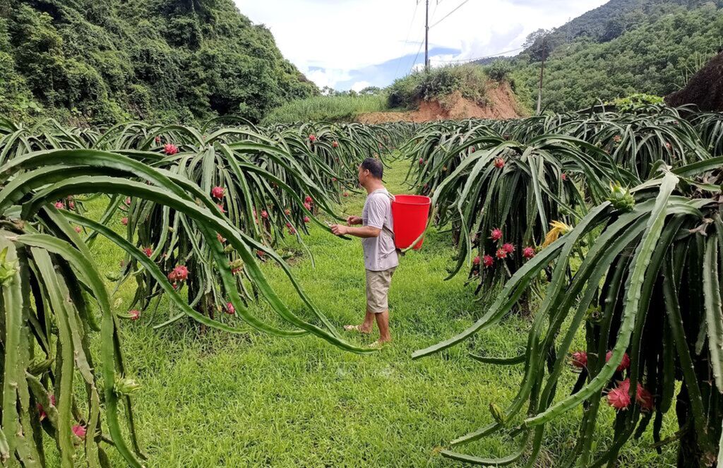 The dragon fruit orchard with over 1,000 pillars, laden with fruit, owned by Then Van So, an ethnic Han resident of Lung Buong hamlet, Thuan Hoa commune, Tuyen Quang province. Photo: Đức Thọ – VNAThen Van So beside his ripe dragon fruits in Lung Buong hamlet, Thuan Hoa commune, Tuyen Quang province. Photo: Đức Thọ – VNAThe dragon fruit orchard with over 1,000 pillars, laden with fruit, owned by Then Van So, an ethnic Han resident of Lung Buong hamlet, Thuan Hoa commune, Tuyen Quang province. Photo: Đức Thọ – VNAThe dragon fruit orchard with over 1,000 pillars, laden with fruit, owned by Then Van So, an ethnic Han resident of Lung Buong hamlet, Thuan Hoa commune, Tuyen Quang province. Photo: Đức Thọ – VNA