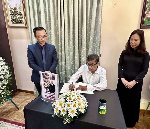 A similar ceremony was also held at the Vietnamese Embassy in Paris on July 25, where Minister Nguyen Van Hung and a delegation of the Vietnamese Ministry of Culture, Sports and Tourism, representatives from Vietnamese associations in France, diplomatic corps, foreign embassies, paid respects to General Secretary Trong.
