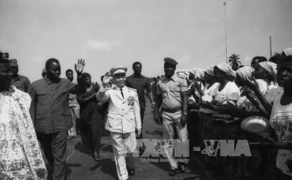 | General Vo Nguyen Giap is warmly welcomed by leaders and people of Cotonou during his visit to Benin from November 5-8 in 1980. (File Photo: VNA) |