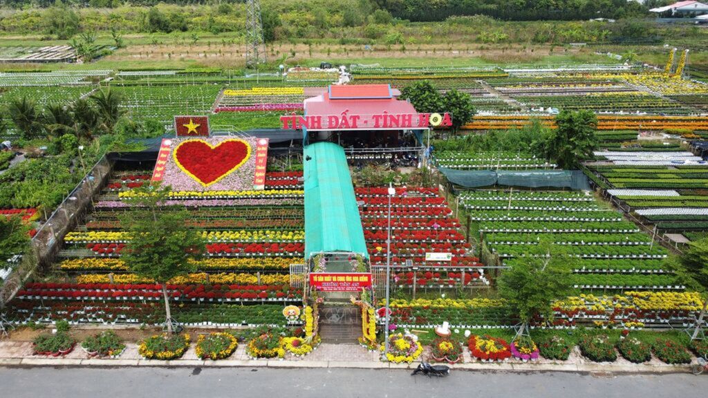 Giant “heart” made of 1,600 pots of fresh flowers at Sa Dec Flower Village in Dong Thap