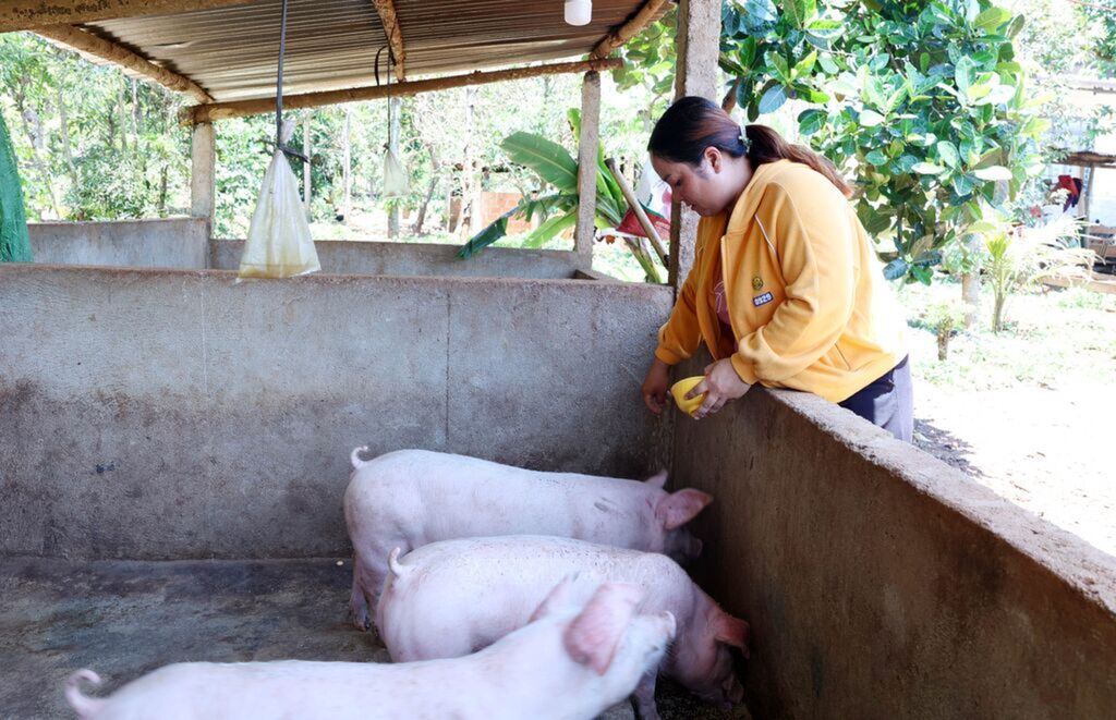 With budget from the “Golden Hammer and Sickle Savings Book” family of Y Klon Nie and H Puê Nie in H'Ne hamlet, Ea Drông commune has invested effectively in livestock farming. VNA Photo: Hoài Thu