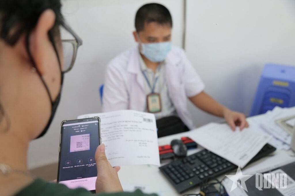 | A patient pays hospital fees using cashless transactions (Photo: qdnd.vn) |