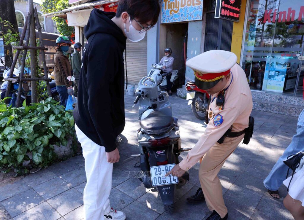 Hanoi Police strictly handle license plate covering and phone use while driving
