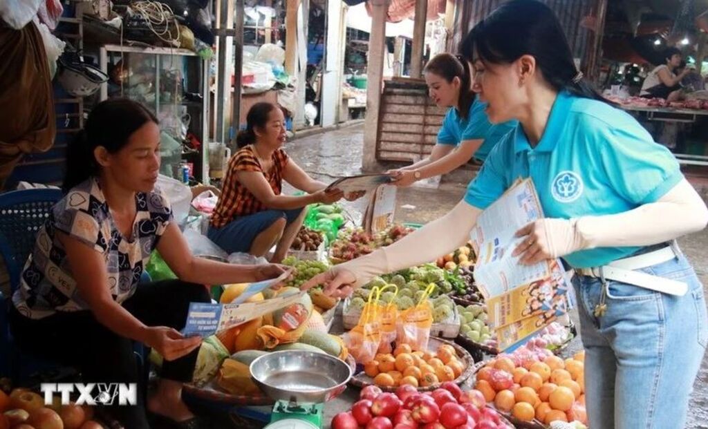 | Distribute leaflets and popularise social insurance policies to people in Nam Dinh city. (Photo: VNA) |