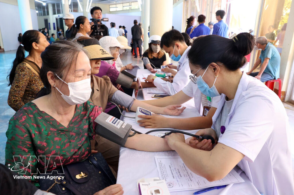 | Doctors provide free health check-ups for local residents at the launching ceremony of the Humanitarian Month 2025 in Dak Lak province. (Photo: VNA) |