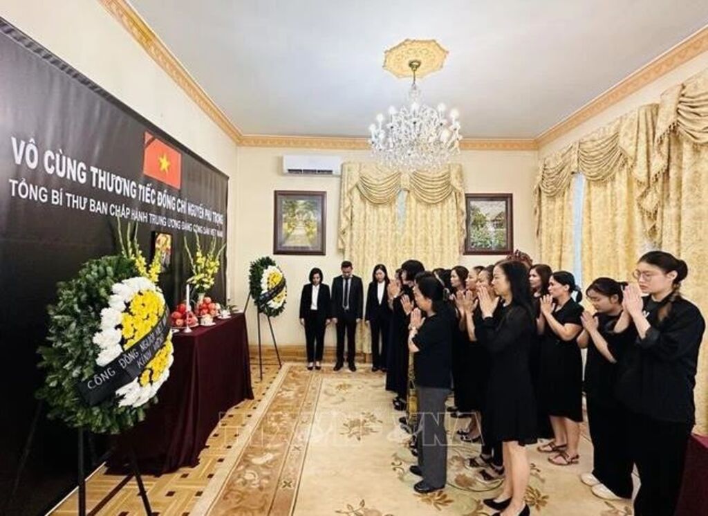 Vietnamese Ambassador to Hungary Nguyen Thi Bich Thao expressed her sorrow at and an immense sense of loss at the Party leader's passing, stressing that the Party has lost an intelligent, exemplary, and steadfast leader, while the State and people have lost a distinguished fighter who devoted his whole life to the country and people.