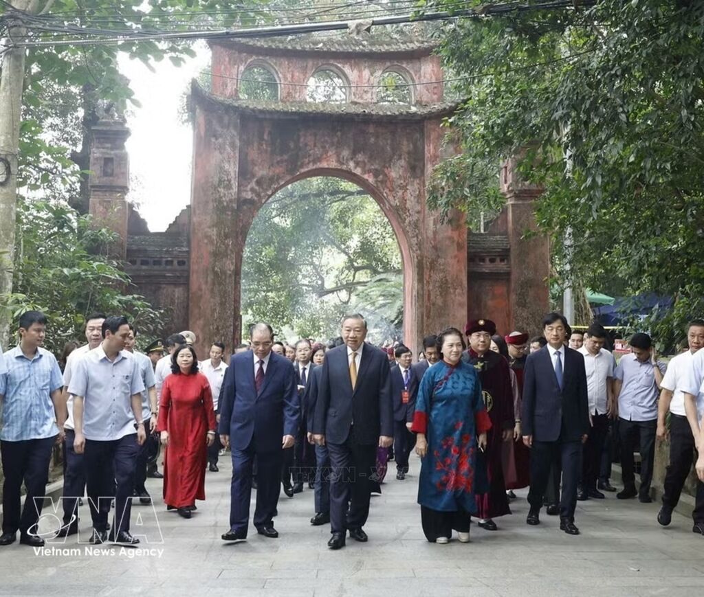 Party General Secretary and President To Lam, together with incumbent and former leaders of the Party and State, set out for Nghia Linh Mountain to offer incense in tribute to the Hung Kings, on April 26 morning (the 10th day of the third lunar month) — the Hung Kings Commemoration Day — at the Special National Historical Relic Site of Hung Temple in the northern province of Phu Tho.