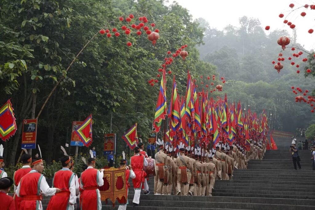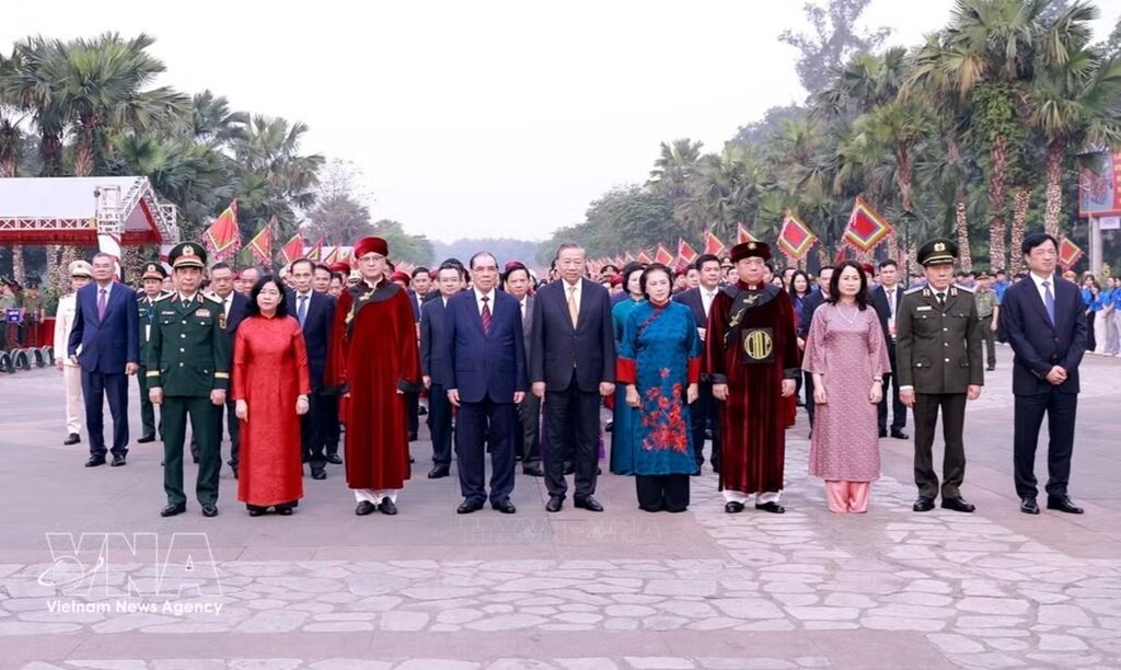The ceremonial palanquin procession prepares to set out for Nghia Linh Mountain, where the Hung Kings are worshipped (Photo: VNA)The ceremonial palanquin procession advances up Nghia Linh Mountain, where the Hung Kings are worshipped (Photo: VNA)Party General Secretary, President To Lam, together with incumbent and former leaders of the Party and State, set out for Nghia Linh Mountain to offer incense in tribute to the Hung Kings (Photo: VNA)Party General Secretary, President To Lam, together with incumbent and former leaders of the Party and State, set out for Nghia Linh Mountain to offer incense in tribute to the Hung Kings (Photo: VNA)Party General Secretary, President To Lam, together with incumbent and former leaders of the Party and State, pay tribute to the Hung Kings (Photo: VNA)Party General Secretary, President To Lam offers incense at Thuong Temple (Photo: VNA)