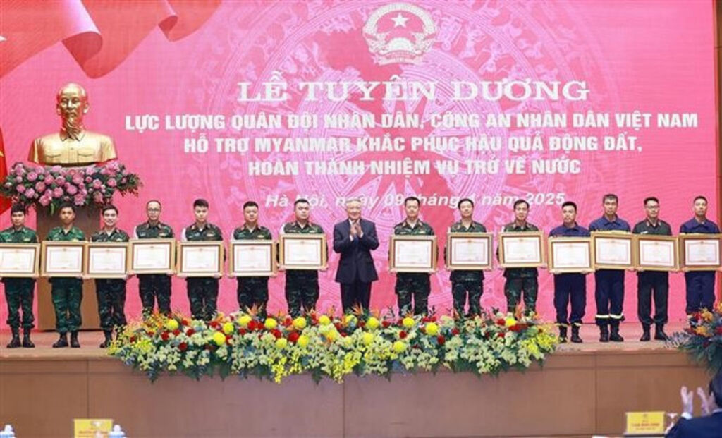 During a commendation ceremony in Hanoi on April 9, PM Chinh said following the 7.7-magnitude earthquake on March 28, Vietnam quickly sent a 106-member delegation of military and public security officers to Myanmar. From March 30 to April 8, the forces worked tirelessly, earning recognition as the most effective international aid contingent on the ground. Their efforts led to the rescue and location of the highest number of victims, alongside extensive humanitarian support activities.