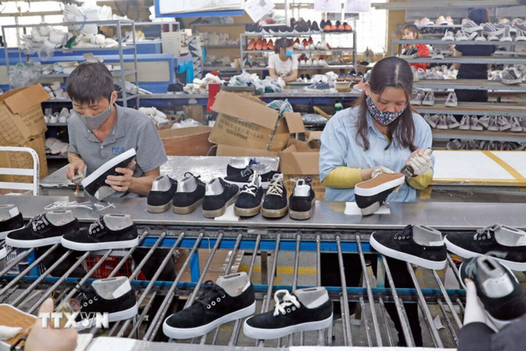 | Footwear production for export at Ha Tay Chemical Weave Co. Ltd in Hanoi. (Photo: VNA) |
