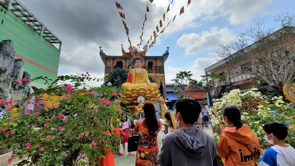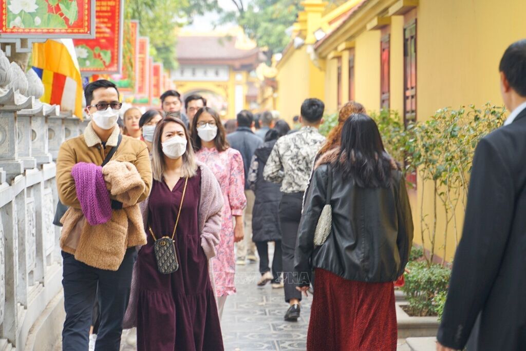 Pagoda visit during Tet festival - cultural tradition for Vietnamese