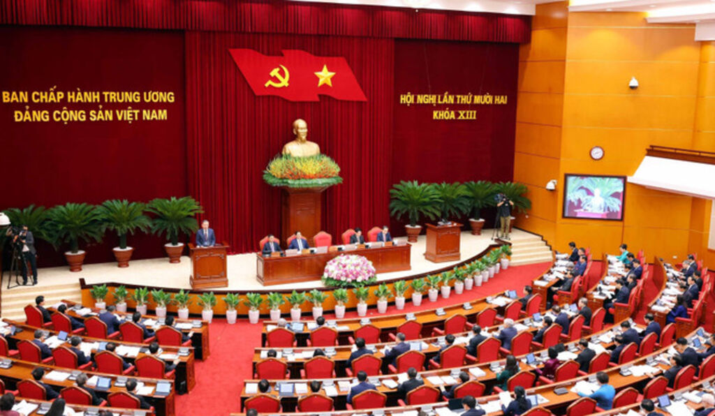 | Party General Secretary To Lam presides over the 12th plenum of the 13th Party Central Committee on July 18 (Photo: VNA) |