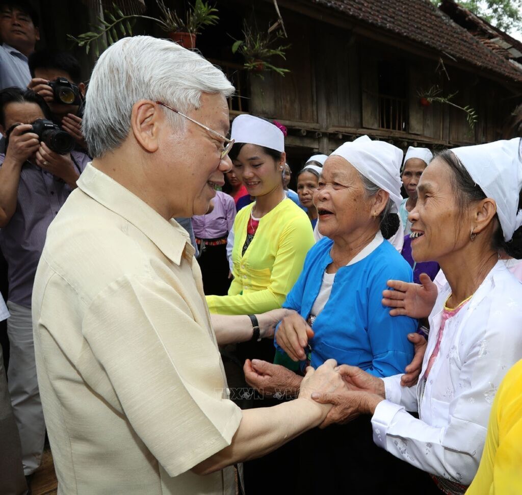 Party General Secretary Nguyen Phu Trong and people in Thuong Dien village, Vinh Quang commune, Vinh Bao district, Hai Phong city in their great national solidarity festival on November 15, 2017. Photo: Tri Dung - VNAParty General Secretary and President Nguyen Phu Trong attends the Great National Solidarity Festival in Dur Kmăl commune, Krong Ana district, Dak Lak province on the morning of November 11, 2018. Photo: Tri Dung - VNAParty General Secretary Nguyen Phu Trong and people of Ai hamlet, Phong Phu commune, Tan Lac district, Hoa Binh province in May 2017. Photo: Tri Dung – VNAParty General Secretary and Chairman of the National Assembly Nguyen Phu Trong visits and presents Tet gifts to Hoang Van Bao (a historic witness of the Second National Party Congress) in Kim Binh commune, Chiem Hoa district, Tuyen Quang province on January 28, 2011. Photo: Tri Dung - VNAParty General Secretary Nguyen Phu Trong visits a high-tech production area of fruit and vegetable on sandy soil along the coast of the central province of Ha Tinh on April 22, 2016. Photo: Tri Dung - VNAParty General Secretary Nguyen Phu Trong joins traditional dances with ethnic people in Kon Ro Bang 2 village, Vinh Quang commune, Kon Tum city (2017). Photo: Tri Dung - VNAParty General Secretary and President Nguyen Phu Trong extends wishes and gave gifts to environmental workers working on the New Year's Eve of Lunar New Year 2019. Photo: Tri Dung - VNAParty General Secretary Nguyen Phu Trong visits and gives gifts to war invalid Dinh Phi from a disadvantaged family in Tung Ke 2 village, Ayun commune, Chu Se district, Gia Lai province, April 12, 2017. Photo: Tri Dung-VNAParty General Secretary Nguyen Phu Trong attends the Great National Solidarity Festival at Village 5, Yen So commune, Hoai Duc district, Hanoi on November 14, 2021. Photo: Tri Dung-VNA