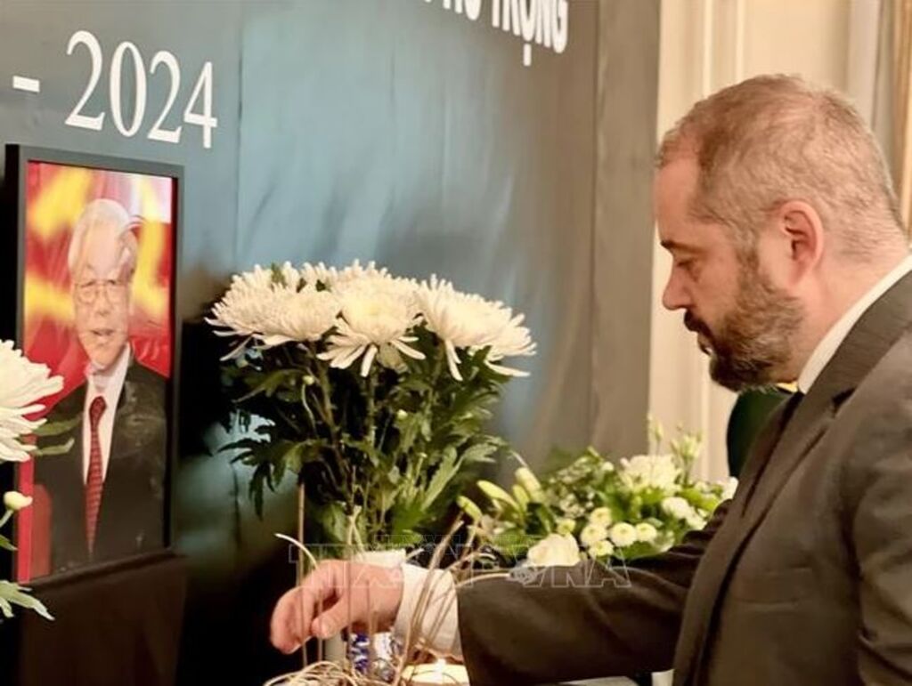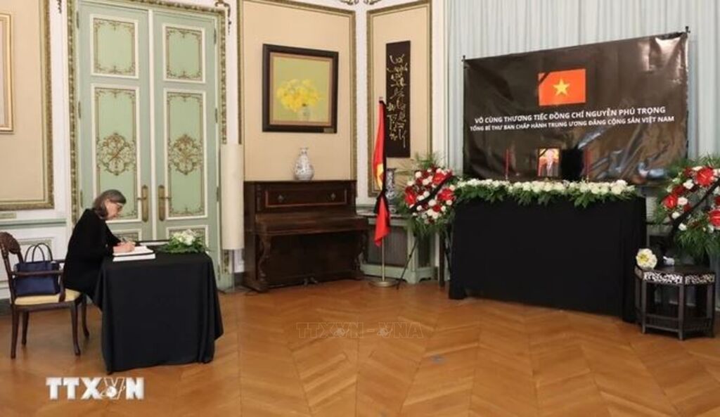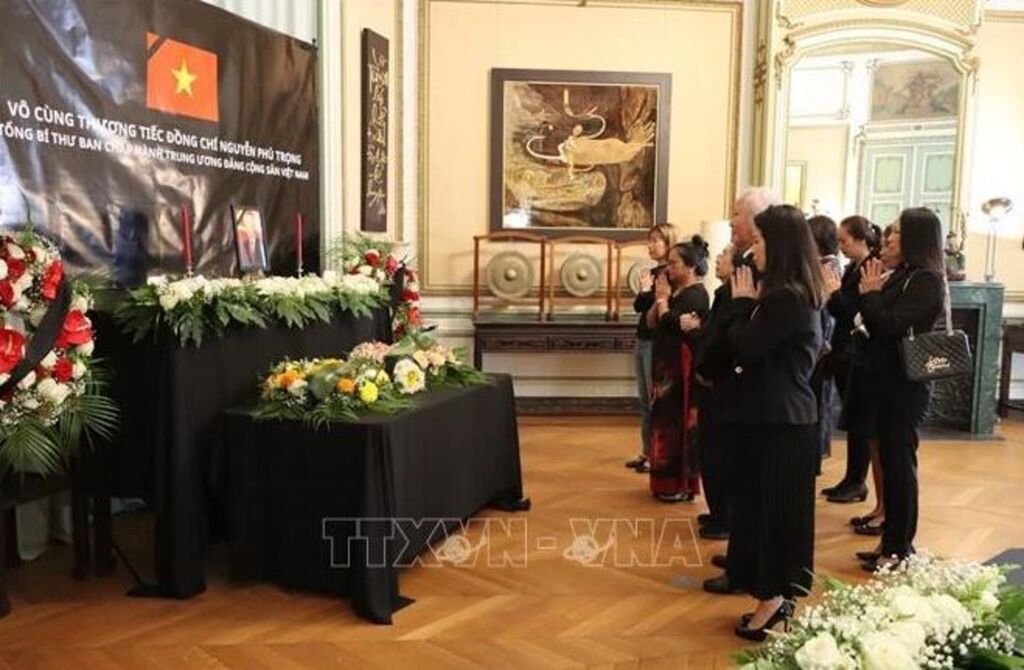Hanoi (VNA) – Vietnamese Embassies across Europe and the Middle East are holding respect-paying ceremonies and opening condolence books for Party General Secretary Nguyen Phu Trong on July 25 and 26.