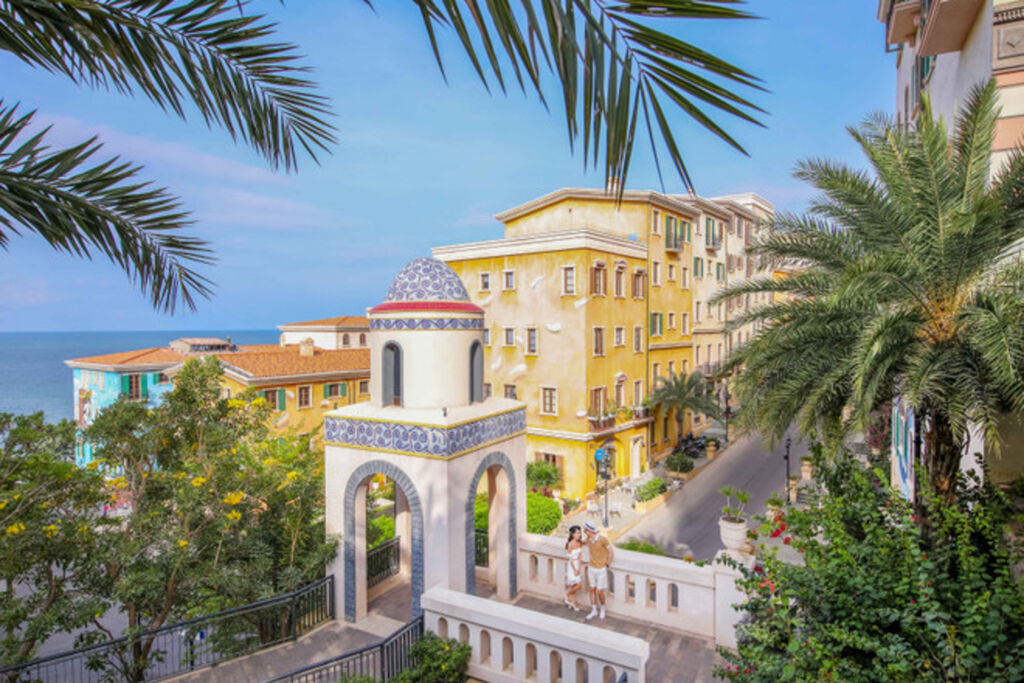 A romantic Mediterranean atmosphere appears through rows of houses painted in sunset hues cascading down the hillside toward the sea, evoking memories of Italy’s Amalfi Coast; the image of an ancient Roman amphitheater is recreated at the departure station of the Hon Thom Cable Car; while a clock tower inspired by the iconic symbol of London has been gently adapted to blend with the island’s coastal scenery.