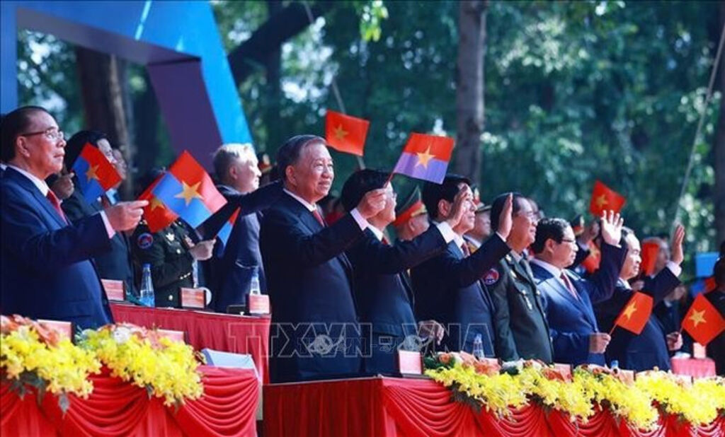 | General Secretary To Lam and delegates watch the parade marking the 50th anniversary of the liberation of the South and National Reunification on April 30, 2025. (Photo: VNA) |