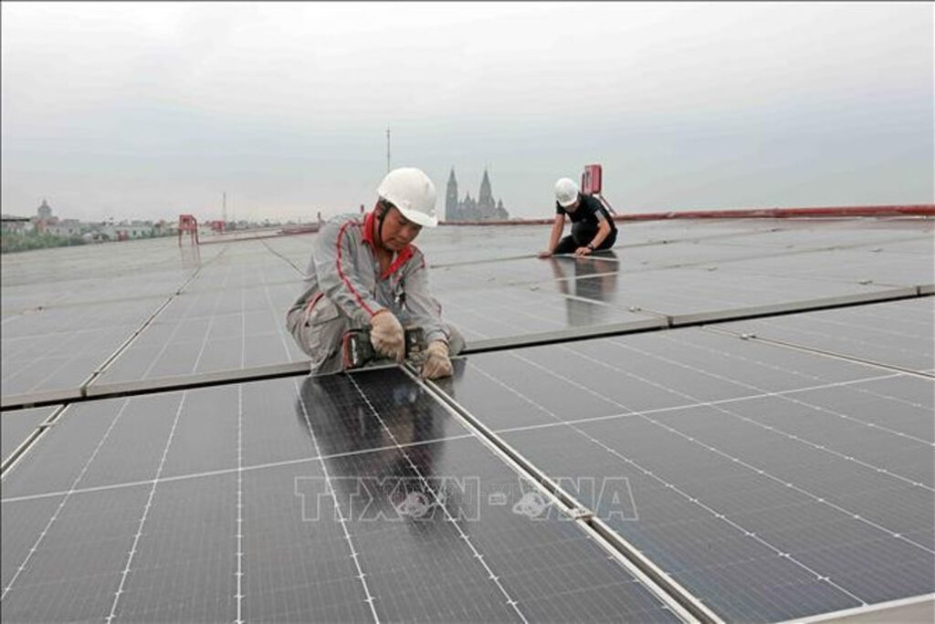 | Reinforcing solar panels at Maxport 9 factory in Hai Hau district, Nam Dinh province. (Photo: VNA) |