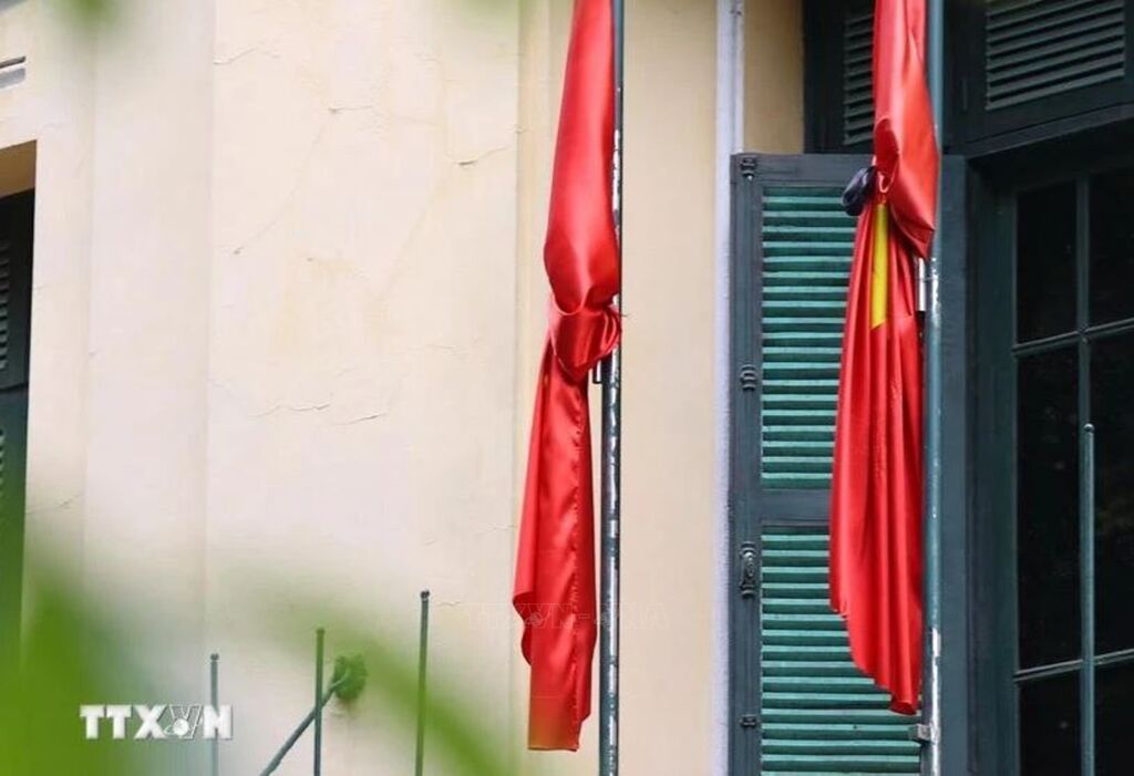 | Flags flown at half mast to commemorate Party General Secretary Nguyen Phu Trong (Photo: VNA) |