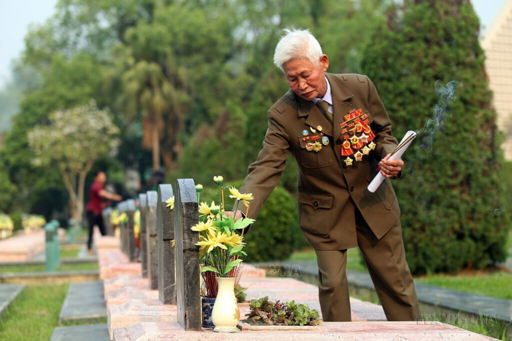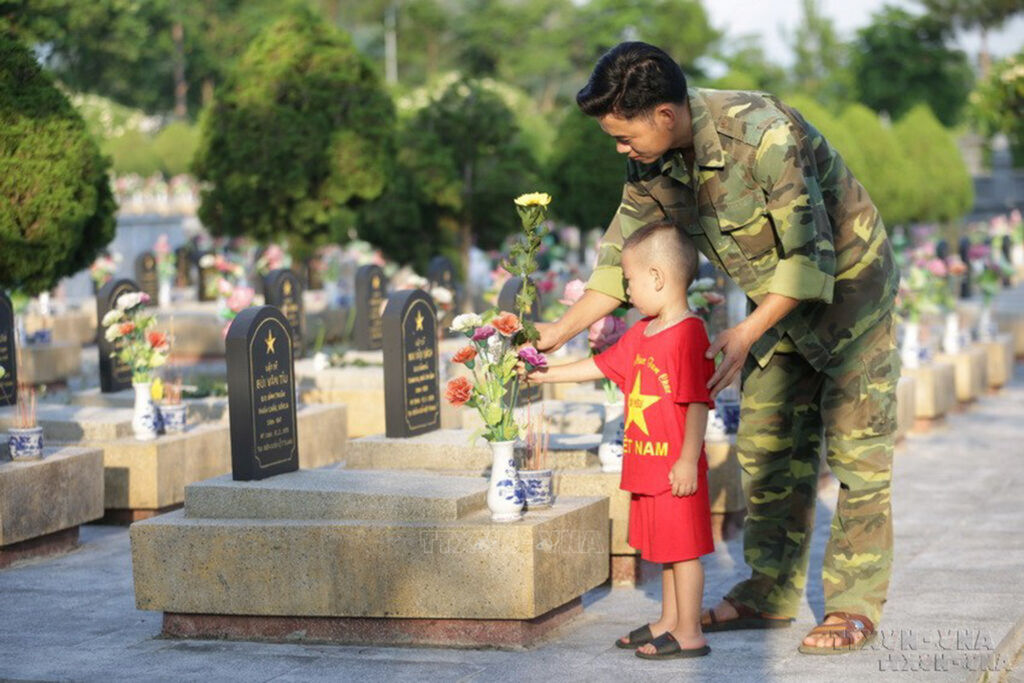A father and his son offer flowers and incense to martyrs at Lai Chau province's martyrs cemetery. Photo: Anh Tuan - VNAYoung people in Yen Mo district, Ninh Binh province light candles to pay tribute to heroic martyrs. Photo: Minh Duc - VNAYoung people in Hung Yen province visit the family of Vietnamese Heroic Mother Nguyen Thi Bang in Chi Tan commune, Khoai Chau district. Photo: Pham Kien - VNAMemorial service and reburial of the remains of seven martyrs who died in the resistance wars against France and the US at Hau Giang province’s cemetery. Photo: Hong Thai - VNABurning incense to commemorate heroic martyrs at Vi Xuyen National Martyrs Cemetery and Martyrs Temple at High Point 468. Photo: Nam Thai - VNAVeteran Pham Duc Cu burns incense to commemorate his comrades who sacrificed their lives in the Dien Bien Phu campaign. Photo: Phan Tuan Anh - VNAVeterans from all over the country burn incense to commemorate their comrades at the 468 high point of the Vi Xuyen front in Ha Giang province. Photo: Thanh Tung-VNA