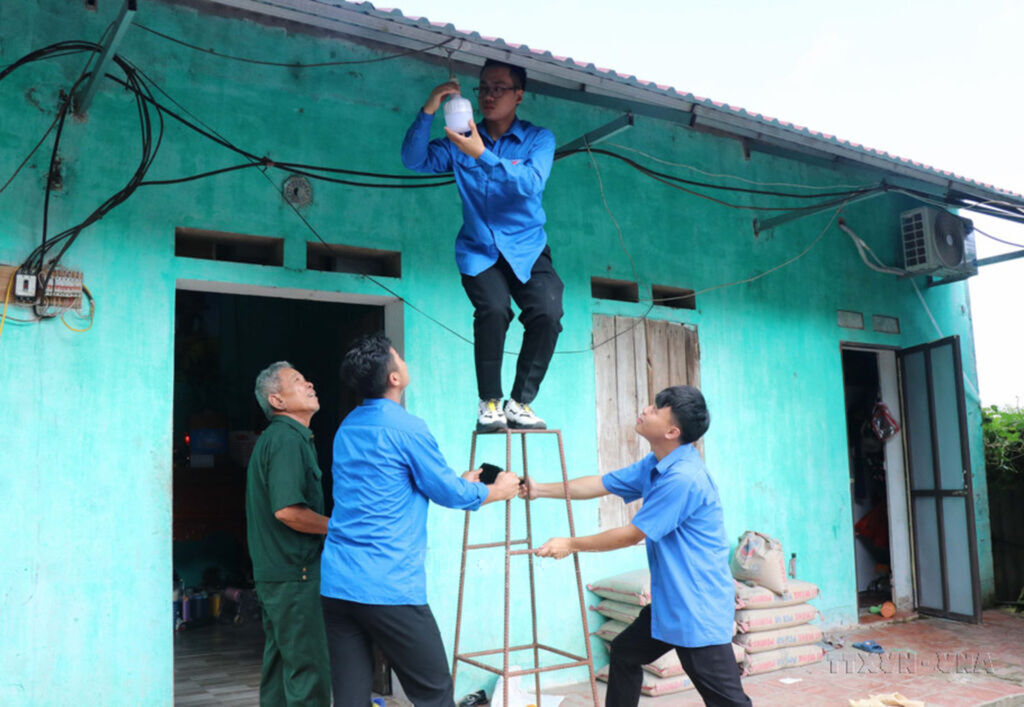 Young people help repair electrical appliances for a veteran's family in Dong Cuu commune, Gia Binh district, Bac Ninh province. Photo: Thanh Thuong - VNA