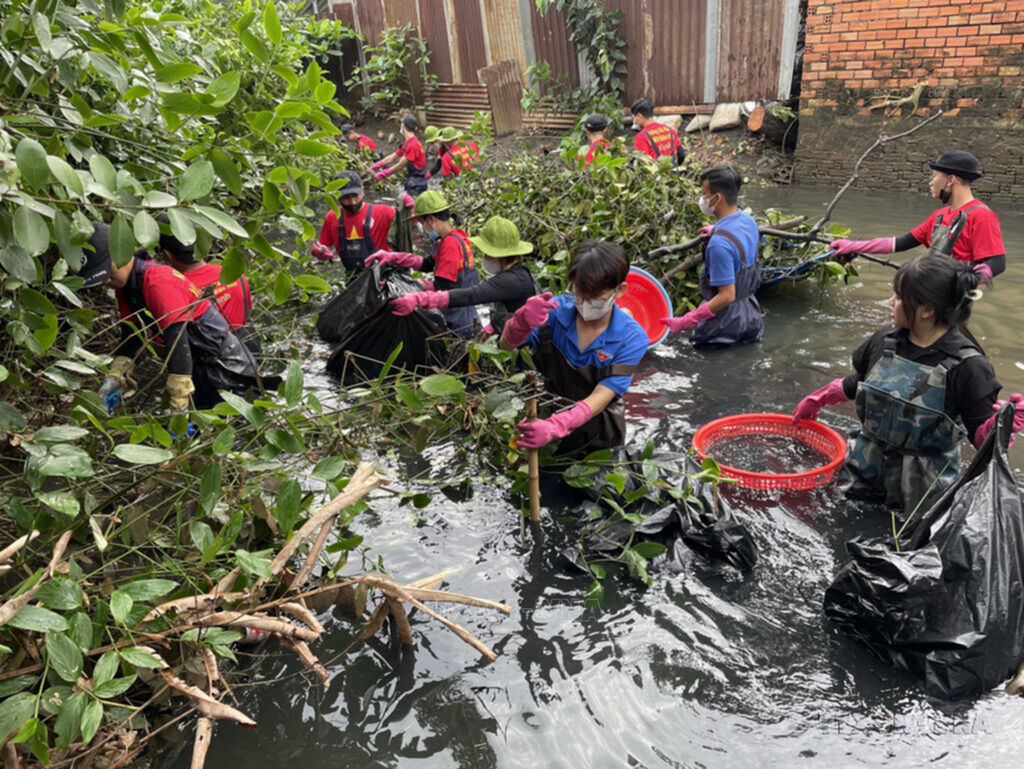 Volunteers from the Bien Hoa Xanh group help clean up waste at Cau Sac canal, Buu Hoa ward, Bien Hoa city, Dong Nai province. Photo: Le Xuan-VNA