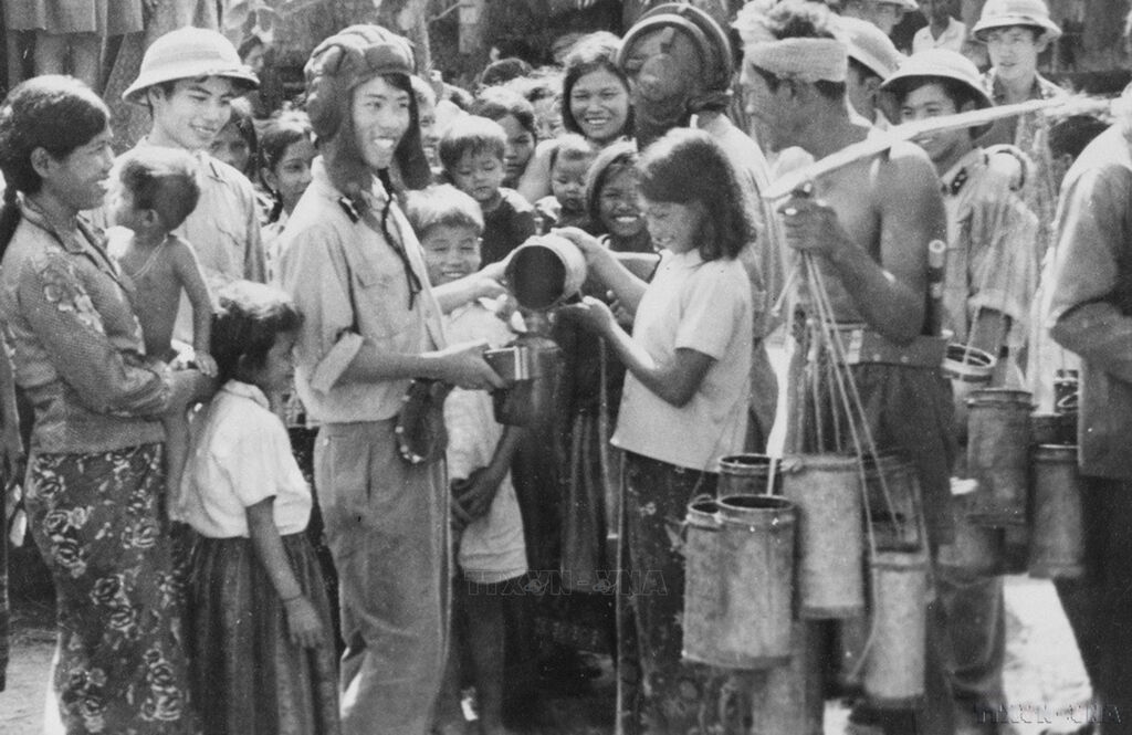 At noon on January 7, 1979, the Cambodian revolutionary armed forces, together with Vietnamese volunteer soldiers, liberate Phnom Penh, overthrowing the Khmer Rouge genocidal regime and bringing a brighter future to the land of the Angkor temples. (Photo: VNA)Vietnamese soldiers assist Cambodian people in harvesting rice. (Photo: VNA)Cambodian people bring palm sugar juice to Vietnamese volunteer soldiers during the days they helped them harvest rice – a touching image of the deep bond between Vietnamese and Cambodian soldiers and civilians in the fight to overthrow the genocidal regime. (Photo: VNA)On the morning of May 3, 1983, more than 30,000 Phnom Penh residents bid a heartfelt farewell to the 4th Army Corps – Cuu Long Corps soldiers and Vietnamese volunteer forces completing their international duties and returning home. (Photo: VNA)Cambodian people bid an emotional farewell to Vietnamese volunteer soldiers completing their international duties and returning home. (Photo: VNA)Residents of Battambang province (Cambodia) bid farewell to Vietnamese volunteer soldiers completing their international duties and returning home on the morning of June 20, 1984. (Photo: VNA)Phnom Penh residents fondly send off soldiers of the 4th Army Corps – Cuu Long Corps and Vietnamese volunteer forces completing their international duties and returning home on the morning of May 2, 1983. (Photo: VNA)Cambodian children bid a heartfelt farewell to Vietnamese volunteer soldiers returning home in 1982. (Photo: Nguyen Dinh – VNA)Tens of thousands of Phnom Penh residents warmly bid farewell to Vietnamese volunteer soldiers completing their international duties and returning home in June 1984. (Photo: VNA)