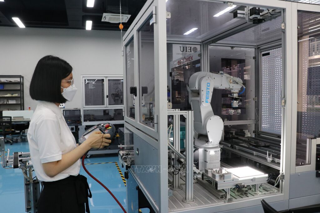A practical robotics workshop at the Eastern International University in Dinh Duong province to help students gain employment right after graduation. Photo: Chi Tuong - VNA