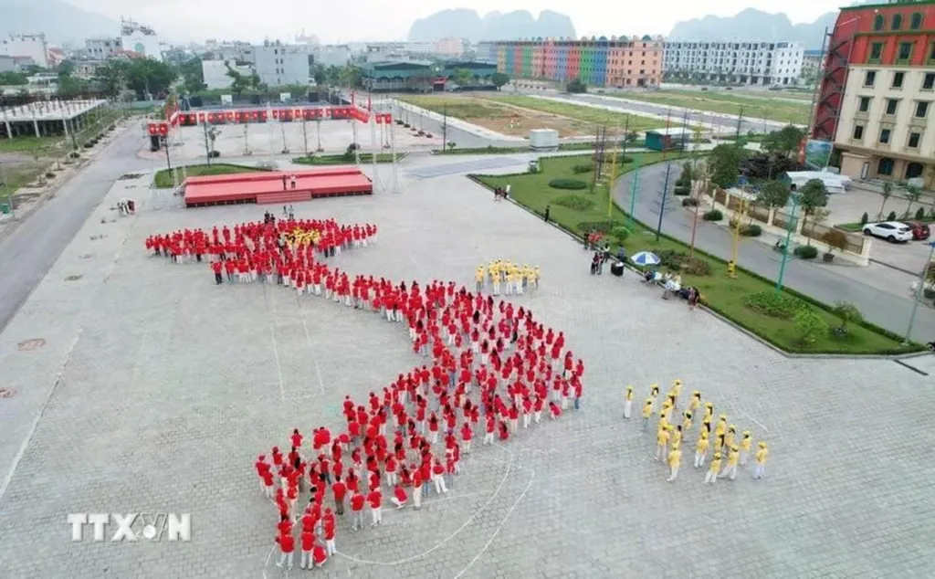 Quang Ninh (VNA) – In an event held along the shores of Bai Tu Long Bay, Cam Pha city, the northeastern province of Quang Ninh, 500 students gathered to create a formation resembling the map of Vietnam and the national flag, marking a meaningful celebration of national pride and unity.
