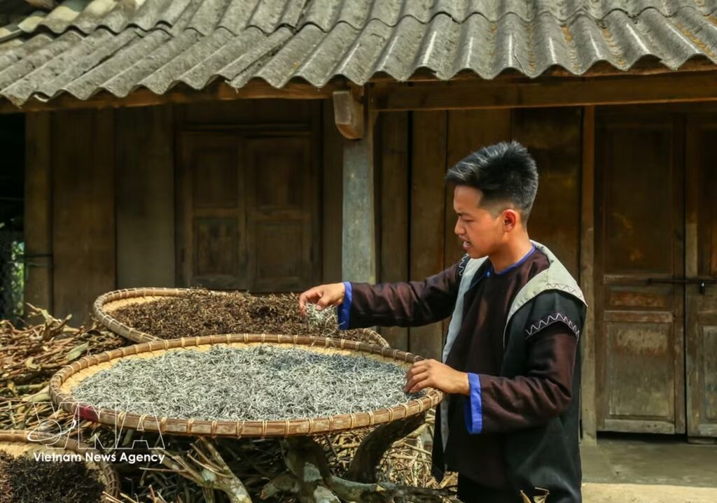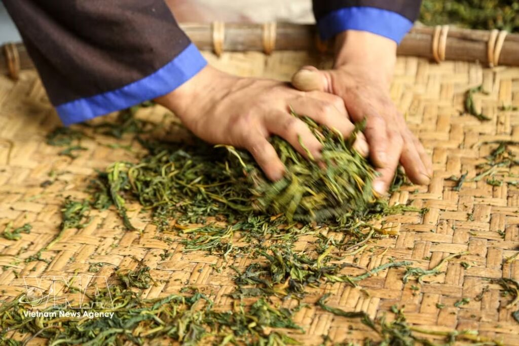Located at an altitude of 1,300–1,400 metres above sea level, Suoi Giang (Lao Cai province) is home to stilt houses lining the hillsides, surrounded by lush greenery and a cool year-round climate – ideal conditions for Shan Tuyet tea to thrive. (Photo: published by VNA)When poured into a cup, Shan Tuyet tea reveals its amber-red colour. This is the stage when the tea maker checks the dryness and aroma, preparing for tasting. (Photo: published by VNA)Before machinery was introduced, Suoi Giang locals process Shan Tuyet tea using manual rolling methods – a technique requiring skill and experience. (Photo: published by VNA)Each bud carries not only the flavour of the mountains but also the hope for a more stable livelihood for local people. (Photo: published by VNA)Natural sun-drying allows the tea leaves to dry gradually, preserving their original colour and, notably, the fine silvery-white hairs covering the buds – the most prized feature of Suoi Giang tea. (Photo: published by VNA)A layer of green moss covering the trunks of Shan Tuyet tea trees is a distinctive feature of ancient trees growing in a cool, humid climate year-round. (Photo: published by VNA)