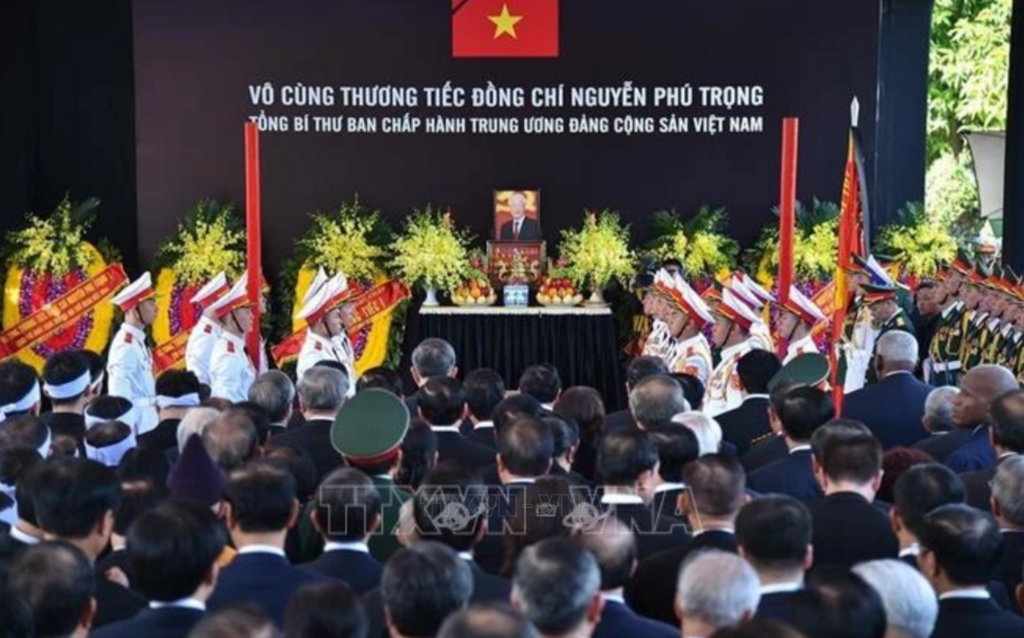 The Central Committee of the Communist Party of Vietnam, the National Assembly of the Socialist Republic of Vietnam, the President of the Socialist Republic of Vietnam, the Government of the Socialist Republic of Vietnam, the Central Committee of the Vietnam Fatherland Front, the State Funeral Board and the family of comrade Nguyen Phu Trong, General Secretary of the Central Committee of the Communist Party of Vietnam, express our sincere thanks to compatriots, comrades and soldiers nationwide, compatriots abroad, and international friends for showing deep-rooted sentiments, boundless regret, and profound respect for General Secretary Nguyen Phu Trong; for coming to pay tribute to, sending letters and messages of condolences, as well as attending the memorial service, and seeing off comrade Nguyen Phu Trong, General Secretary of the Central Committee of the Communist Party of Vietnam, to the glorious history of the civilised and heroic Vietnamese nation.