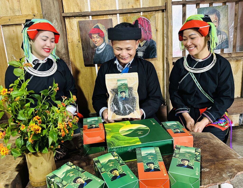 Mr. Dang Van Hau, of the Dao ethnic group (Xa Phin hamlet, Thanh Thuy border commune, Tuyen Quang province), stands beneath the canopy of a centuries-old Shan Tuyet tea tree. Photo: Duc Tho – VNAMr. Dang Van Hau, a Dao ethnic member and Director of Tra Peng Cooperative, picks tea with local people. Photo: Duc Tho – VNAResidents of Xa Phin hamlet, Thanh Thuy border commune, Tuyen Quang province, package Tra Peng tea products. Photo: Duc Tho – VNADao ethnic women (Xa Phin hamlet, Thanh Thuy border commune, Tuyen Quang province) hand-roll tea leaves. Photo: Duc Tho – VNATasting freshly pan-roasted tea is a cultural tradition of the Dao ethnic people (Xa Phin hamlet, Thanh Thuy border commune, Tuyen Quang province). Photo: Duc Tho – VNAMr. Dang Van Hau, Dao ethnic group (Xa Phin hamlet, Thanh Thuy commune, Tuyen Quang province), introduces Tra Peng Cooperative’s products. Photo: Duc Tho – VNAMr. Dang Van Hau, Dao ethnic group (Xa Phin hamlet, Thanh Thuy border commune, Tuyen Quang province), manually pan-roasts tea leaves. Photo: Duc Tho – VNA